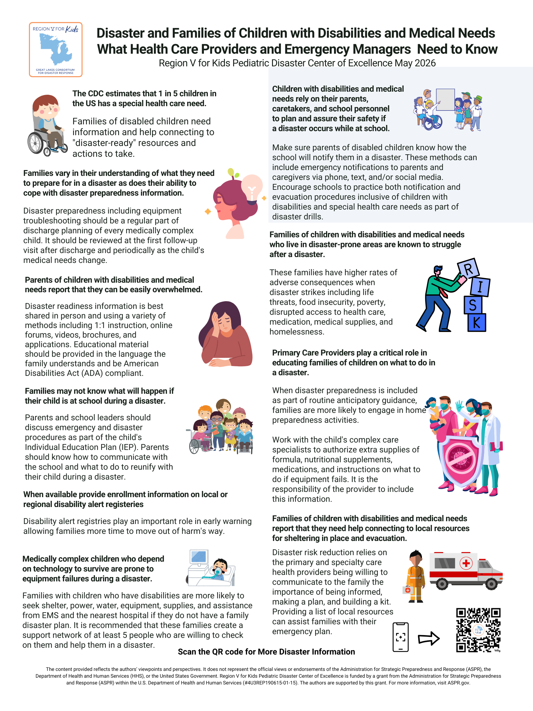 Families with children and youth with disabilities and medical needs are known to be some of the most vulnerable in a disaster. These families have fewer resources and require community and health care provider support to achieve readiness.